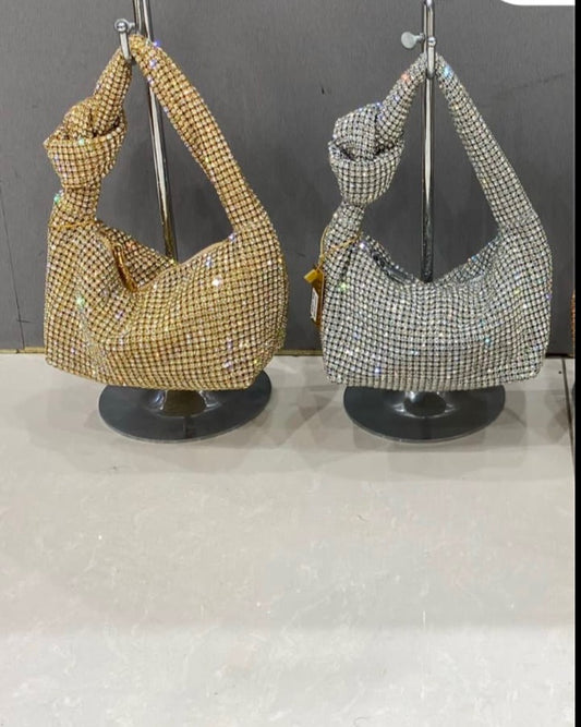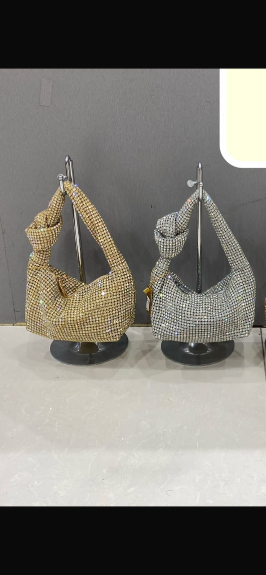 A DIAMANTÉ KNOT GOLD LARA LUXURY BAG .