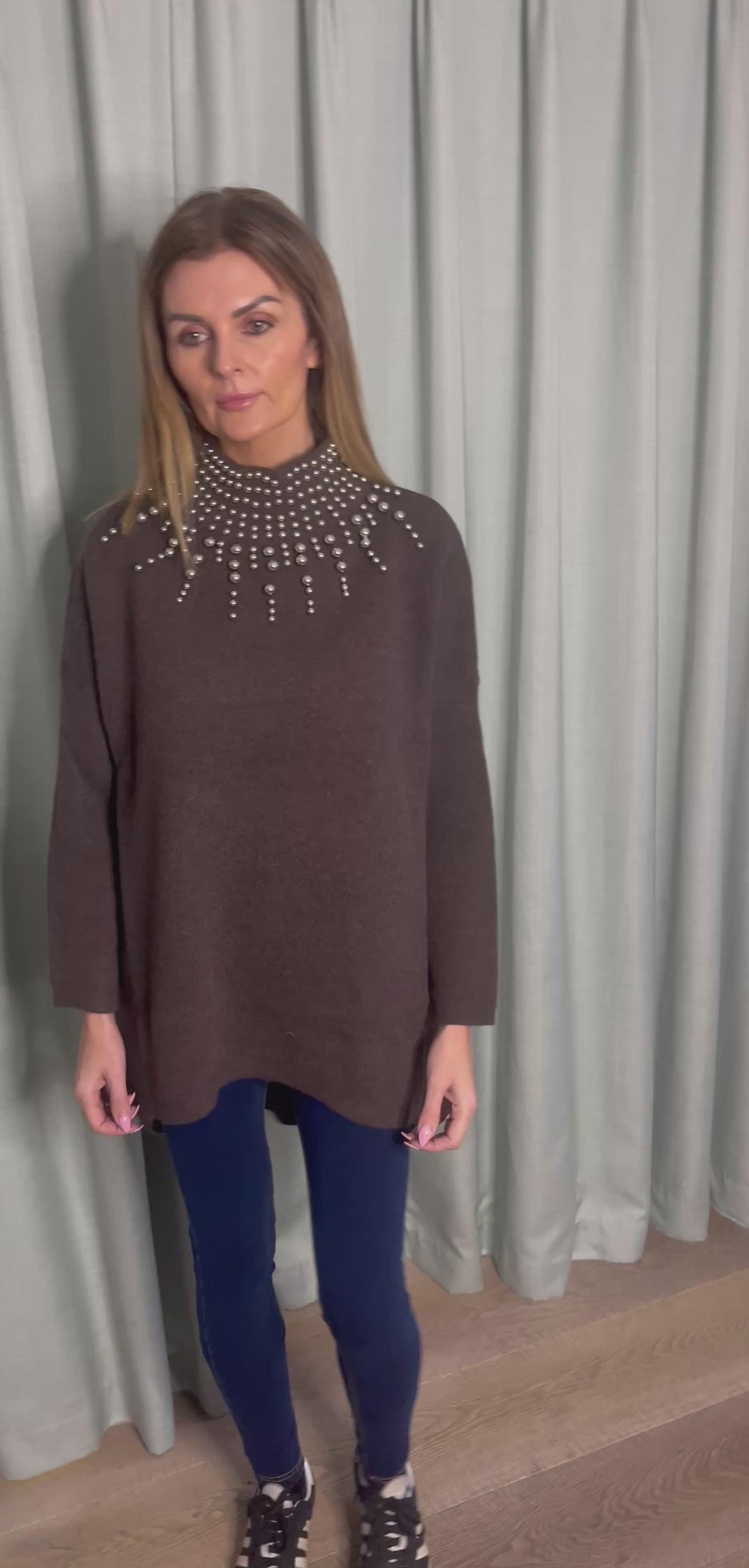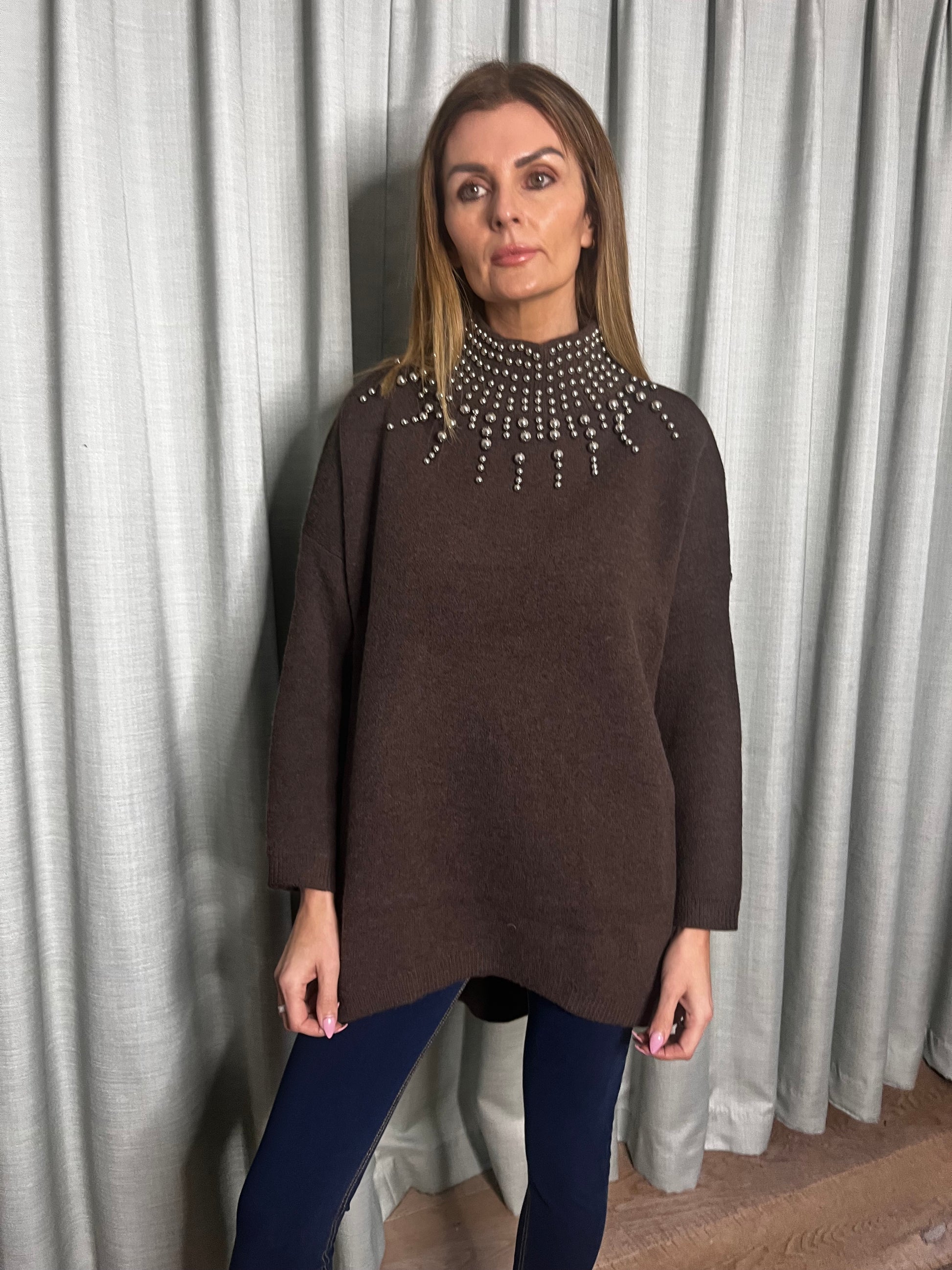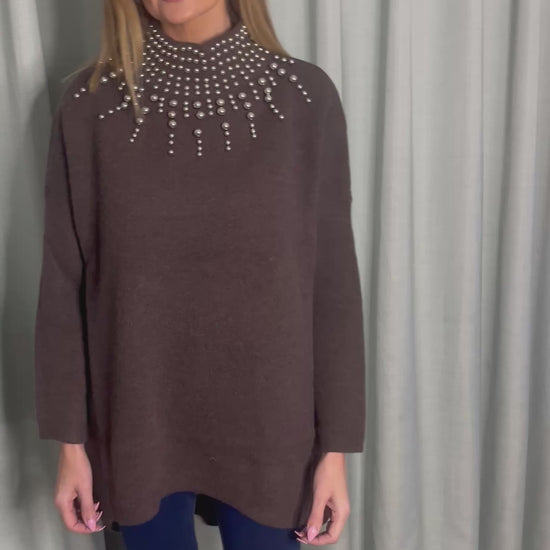 BROWN EMBELLISHED OVERSIZE KNIT